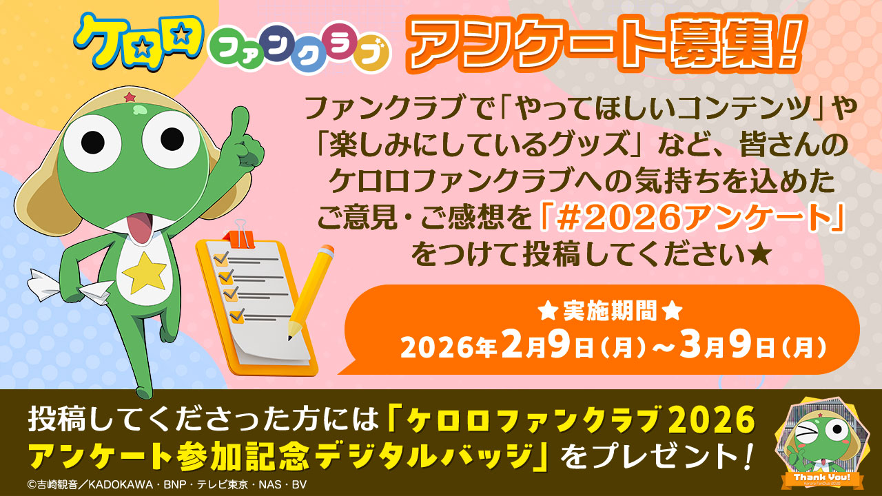 【ケロロファンクラブ年額会員証】の会員番号入りレプリカ会員証をお届け!世界に1つだけの特別な会員証をゲットしちゃおう!